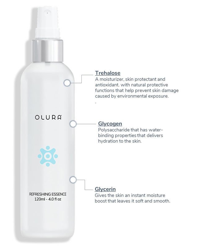 Refreshing Essence: A three-in-one hydrating essence with Trehalose that deeply moisturizes; protects the skin barrier and battles free radicals. The water-light texture delivers a burst of powerful moisture that penetrates without adding weight to leave the skin looking healthy; soft and supple.