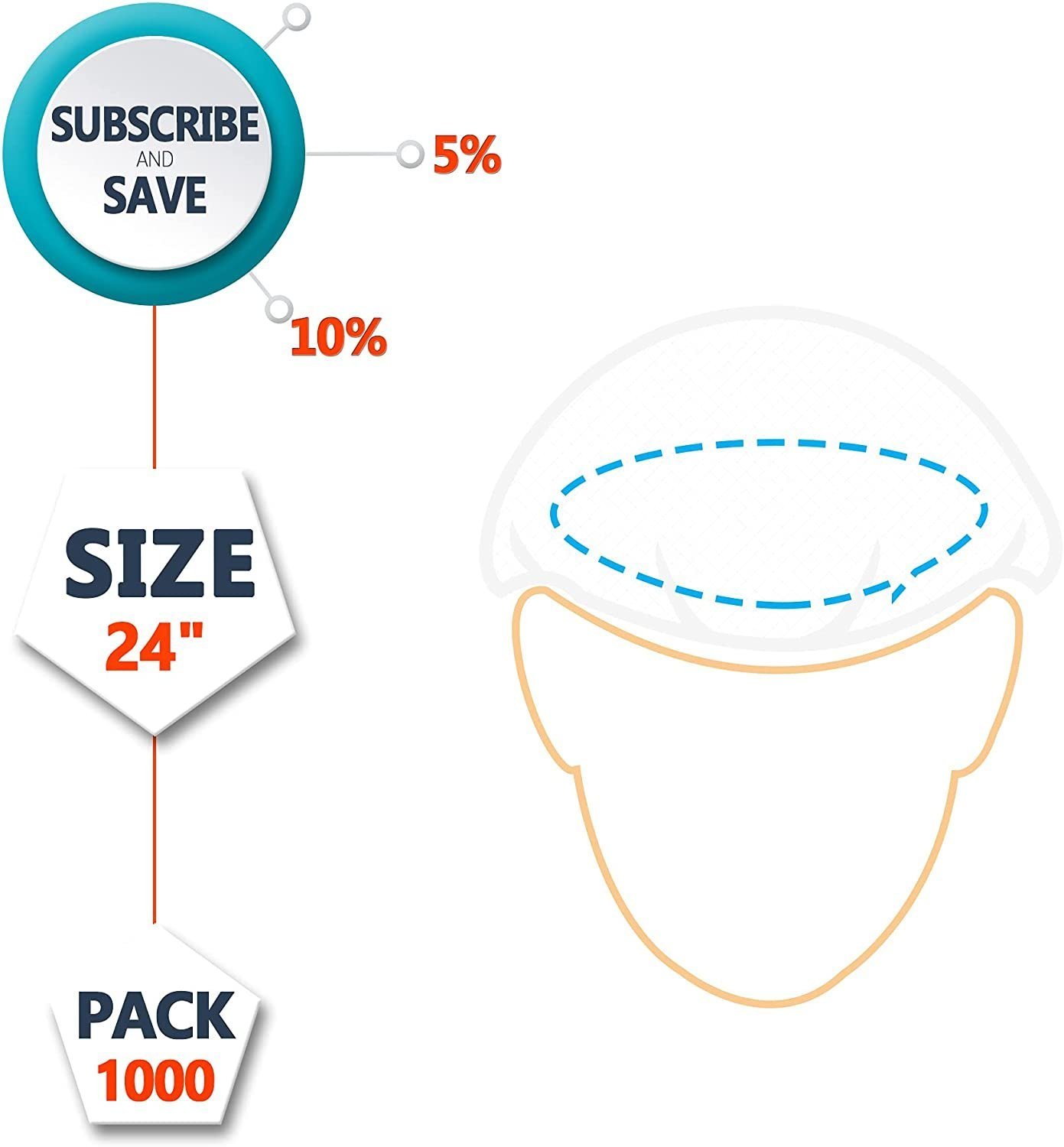White Nylon Hair Nets 26". Pack of 1000 Disposable Head Caps with Elastic Edge Mesh. Stretchable Adult Hairnets for General Use; Cooking; Food Service. Unisex; Lightweight; Breathable.