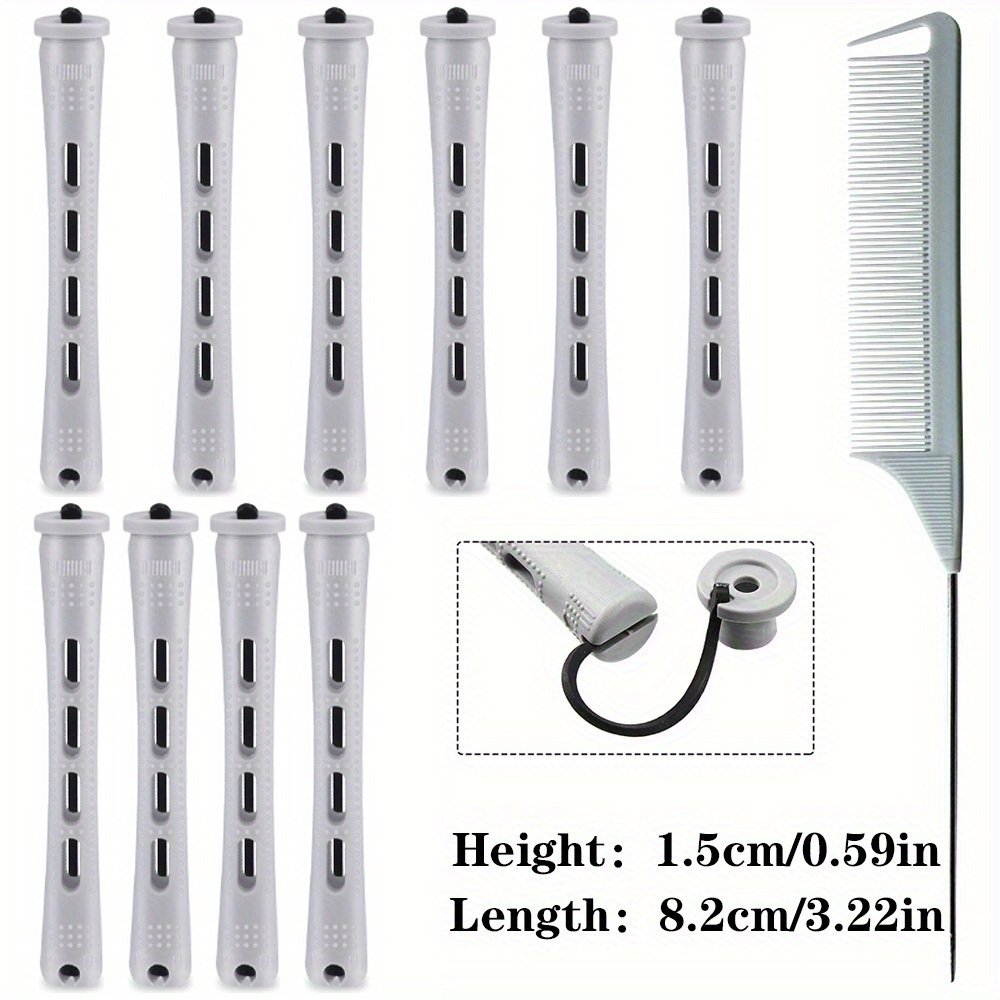 10pcs Professional Hair Perm Rods with Comb and Elastic Rubber Bands - Short Curlers for Perfect Hair Styling and Hairdressing