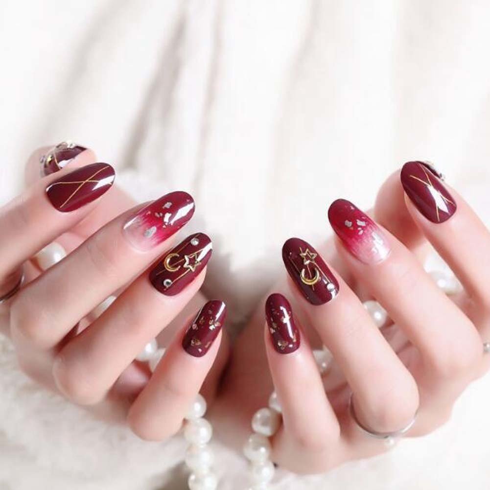 Wine Red False Fingernails Artificial False Nails Tips Wedding Nail Art Decoration; Moon and Star Fake Nails Wine Red False Fingernails Artificial False Nails Tips Wedding Nail Art Decoration; Moon and Star Fake Nails